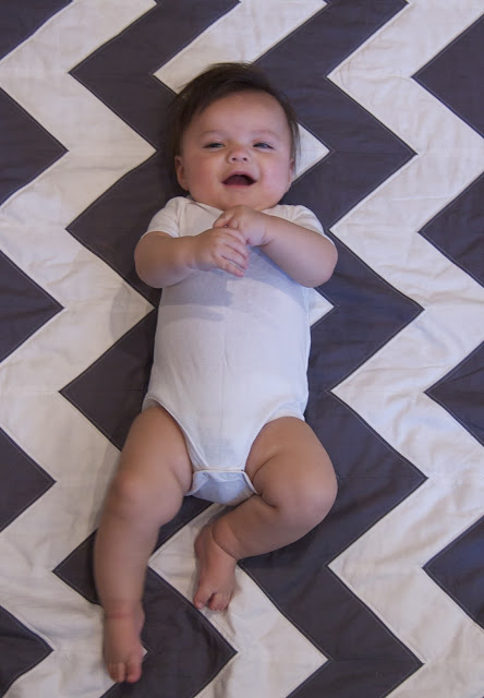 He fits into 6 month clothes already! SO BIG! It's a good thing, because almost all of the 3-6 month clothes he got were short sleeved. It's always fun when they fit into a different outfit. When they only have a few that fit, they can get